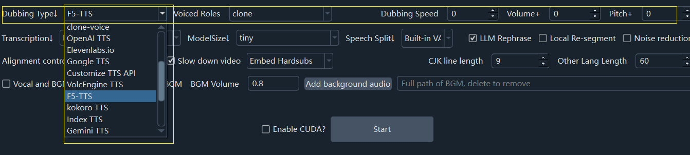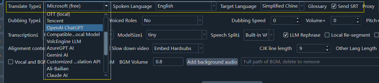 Dubbing Speedvalue (e.g.,10or15) to speed up dubbing, as English sentences are typically longer. - Check both